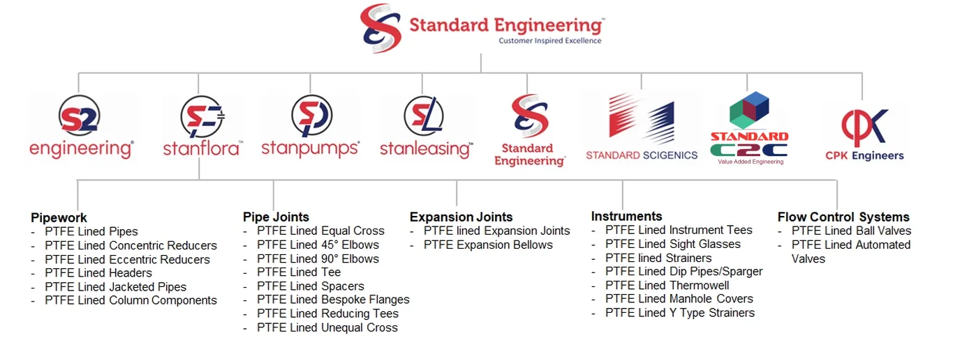Standard Flora is a subsidary of Standard Engineering Technology, and a specialist in precision-engineered PTFE (polytetrafluoroethylene) solutions, delivering high-performance corrosion-resistant products for demanding industrial applications. The company designs, manufactures and supplies a comprehensive range of PTFE-lined pipes, fittings, valves and custom components, all engineered to withstand aggressive chemical environments while enhancing process efficiency and operational safety. With a strong focus on material innovation and quality assurance, Standard Flora’s products are crafted to meet the unique challenges of sectors including chemical processing, pharmaceuticals, food & beverage and heavy industry.